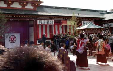 境内が少々混んでいるのは正月の余波かと思いきや、午後から何かあるらしい。何でも成人の日に弓の引き初めを行うとかで、折角だから見物することに決定。しかし中途半端に境内をウロウロしてしまったため、見事に昼食を食いっぱぐれる羽目に。ホントは境内の食事処で神事に使う料理を盛り込んだメニューを食べるつもりだったんですが……。あー、いつもながら優柔不断な性格が嫌になる。